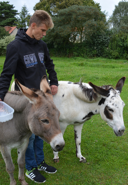 So auch wieder im Mai 2017. Mit großer Freude kommen die Mädchen auf unseren Hof und helfen uns bei den anfallenden Arbeiten, wie Ställe ausmisten, Koppeln säubern oder auch einfach die Tiere mit Streicheleinheiten verwöhnen. Die Esel und Ponys werden gestriegelt und unsere Hunde werden Gassi geführt.